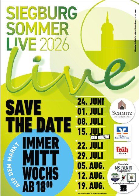 Die Bands werden ab dem 05.05.2025 veröffentlicht via https://www.siegburgsommerlive.de