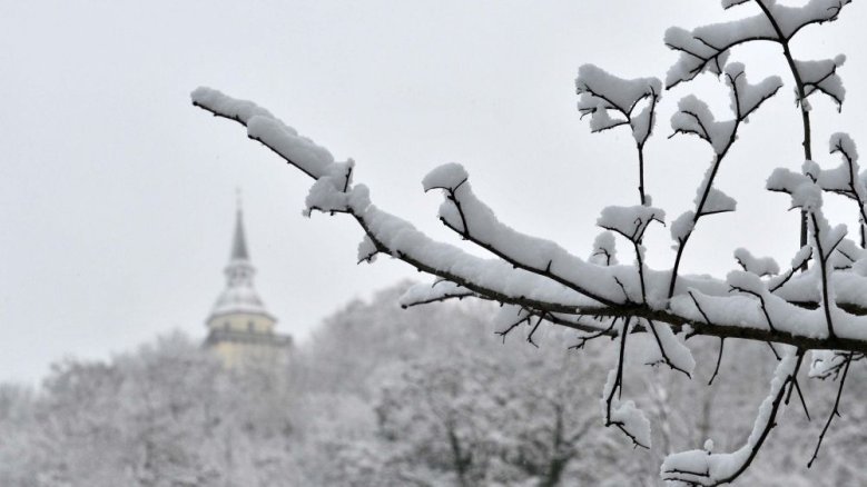 Äste, umhüllt von Schnee und Eis. Im Hintergrund die Abtei im Wintermärchenwald. Das ist Siegburg im Schnee! So sah es in den letzten Tagen aus! Ganz schön eisig. Seit gestern legt der Frost eine kurze Pause ein. Es ist etwas milder, die Werte steigen über null Grad und damit in die "Plus-Regionen". Von Sonne fehlt aber immer noch jede Spur! Keine guten Aussichten für die morgige Silvesternacht: Es bleibt weiter grau und trüb. Die Temperaturen liegen um den Gefrierpunkt. Vereinzelt fällt Regen, sinken die Werte unter Null gibt's weißen Flockennachschub. Beim Anstoßen die warmen Handschuhe, Mütze und Schal nicht vergessen!