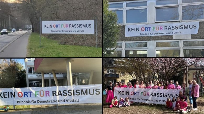 Siegburg. In den aktuell laufenden Antirassismus-Aktionswochen hat das Bündnis für Demokratie und Vielfalt Banner drucken lassen, die klarmachen: Fremdenfeinde sind Menschenfeinde. Bei uns haben sie keinen Platz! Das Bündnis hatte nur ein klitzekleines Problemchen. Wo die Botschaft anschlagen? Bündnismitglied Christa Feld fragte bei den Schulen an, die sich im Netzwerk "Gegen Rassismus, für Courage" engagieren. Wäre hier nicht der jeweils passende Ort? Um es kurz zu machen: Es war der richtige Ort! Drei Schulen sind im Boot. Die Bürgergemeinschaft Kaldauen stellt außerdem ihren Bannerplatz zur Verfügung. So hängen die Programmatiken am Kaldauer Ortseingang, am Anno-Gymnasium, an der Hans Alfred Keller-Schule und am Gymnasium Alleestraße, aufgezählt im Uhrzeigersinn von oben links.