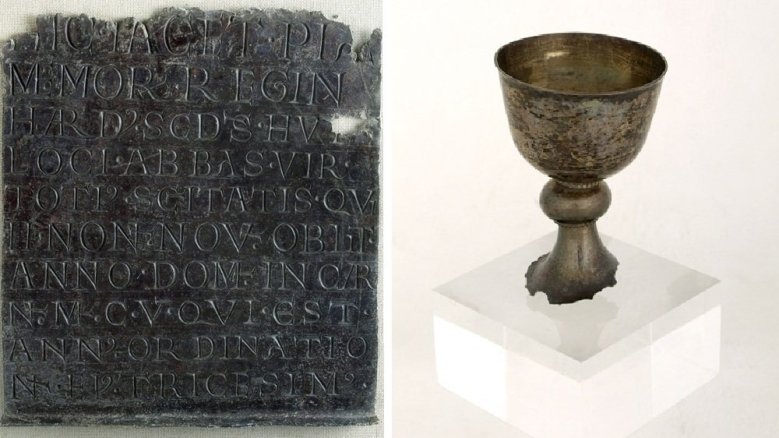 Reginhard (ab 1076 bis zum Tod am 4. November 1105 zweiter Abt des Siegburger Benediktinerklosters, unter seiner Anleitung entstand die Lebensbeschreibung des Heiligen Anno ("Vita sancti Annonis"); Reginhards Grab wurde 1934 in der Abteikirche wiederentdeckt, der althochdeutsche Name Reginhard bedeutet "Der im Rat Starke": Fotos: Bleiplatte und Reisekelch aus Reginhards Grab in der Abteikirche), auch: Reinhard; Karl (Borromäus, Kardinal und Erzbischof von Mailand, lebte von 1538 bis 1584, 1610 heiliggesprochen, Schutzpatron der Seelsorger, einst bei Pestepidemien angefleht).