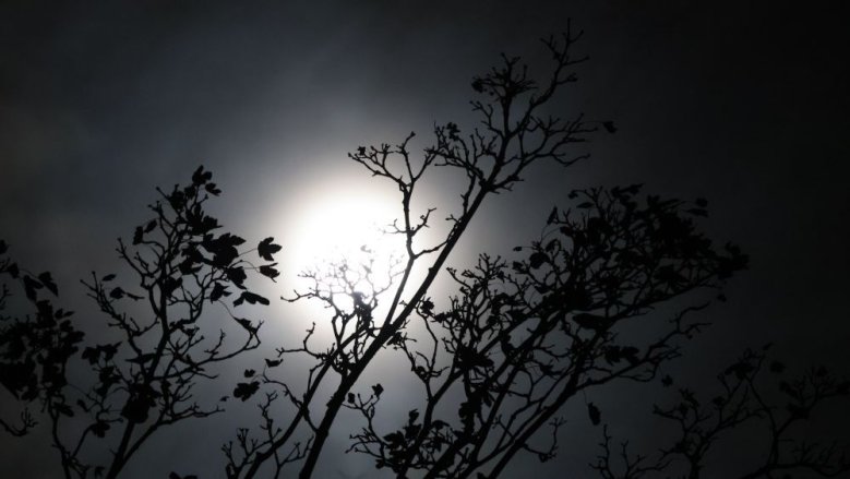 Siegburg. Der Vollmond warf ein romantisch-schauriges Licht. Klaus Ridder fotografierte in Richtung der Quelle, die dürr belaubte Verzweigung im Vordergrund passt ins Bild.