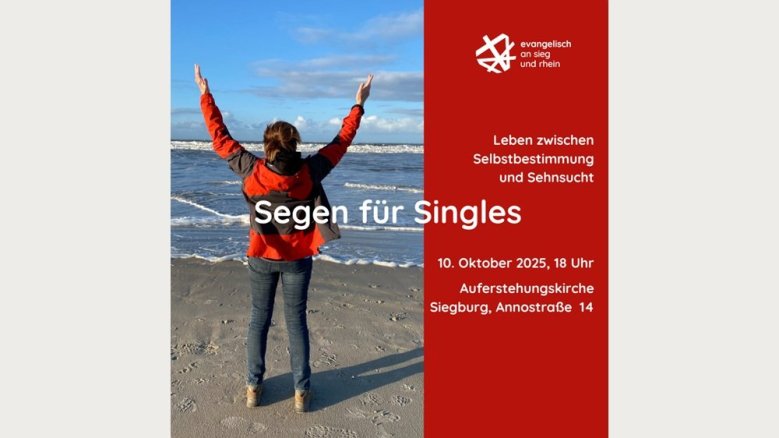 Siegburg. "Segen für Singles" heißt die ungewöhnliche Feier für eine gewöhnliche Lebenssituation in der Auferstehungskirche am Freitag, 10. Oktober, 18 Uhr. Zur inhaltlichen Ausgestaltung ist auf der Homepage des evangelischen Kirchenkreises zu erfahren: "In dieser Segensfeier sollen unterschiedliche Erfahrungen und Gefühle zwischen Selbstbestimmung und Sehnsucht Raum erhalten und Gott um Beistand und Unterstützung gebeten werden."