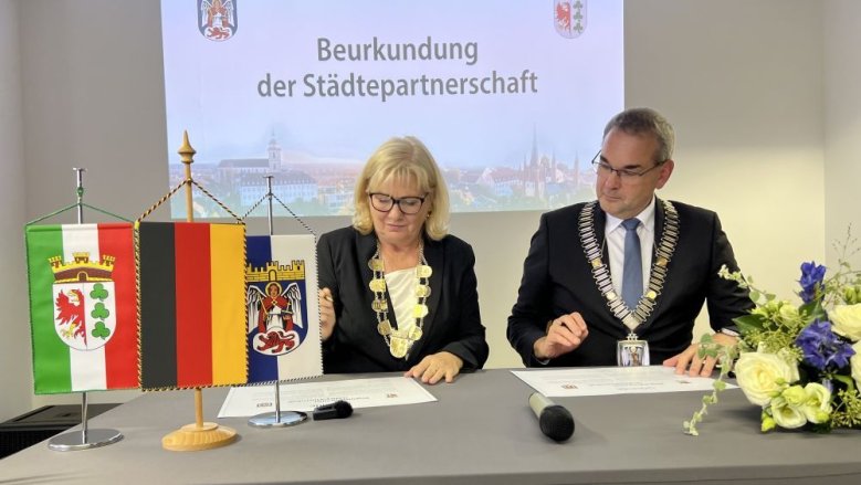 Manuela Saß bedankte sich für die Orientierung, die damals vom Siegburger Stadtdirektor Dr. Konrad Machens und den von ihm entsandten Verwaltungsabordnungen ausging. "Da war ein Aufbruch, da waren aber auch sehr große Herausforderungen und Unsicherheiten. In dieser Situation zahlten sich die Siegburger Ratschläge aus - Geschenke, von denen wir bis heute profitieren."
