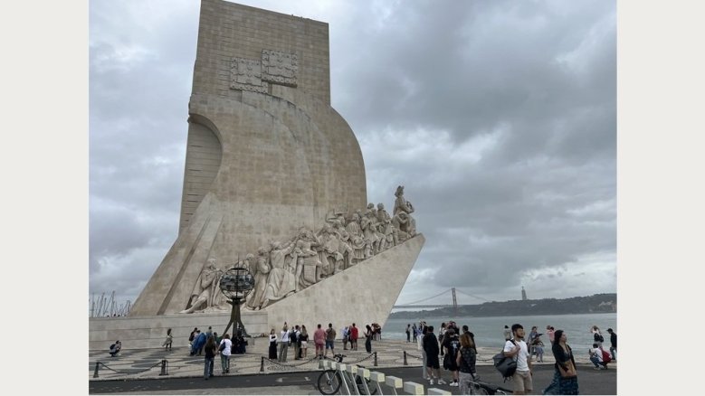 Foto: Das Denkmal am Tejo in Belem nahe Lissabon erinnert an die einstige Seefahrergroßmacht Portugal. Erbaut 1960, also noch vor der Nelkenrevolution, die die Diktatur und den portugiesischen Kolonialismus hinwegfegte, zeigt es Heinrich den Seefahrer an der Spitze weiterer historischer Entdecker und Eroberer. Zuletzt gab es aufgrund der unbestreitbaren kolonialen Interpretationsspielräume deutliche Kritik an dem Riesenschiff aus Stein. Das Bild machte Jan Gerull vor wenigen Tagen.