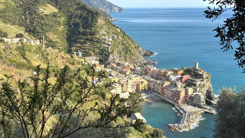 Siegburg/Riomaggiore. Mediterrane Ostergrüße sendet siegburgaktuell-Redakteur Björn Langer aus dem sonnigen Süden. Mit der Familie weilte er in den Cinque Terre, seit 1997 Weltkulturerbe der UNESCO und zwei Jahre später als Nationalpark unter Schutz gestellt. Neben Ausflügen nach Genua und La Spezia wurden vor allem die Wanderschuhe geschnürt, das Gebiet von Nord nach Süd durchquert - von Levanto über Monterosso, Vernazza (Foto), Corniglia, Manarola und Riomaggiore bis nach Portovenere. Die „nackten“ Zahlen: drei Tage, 45 Kilometer, 2.400 Höhenmeter, mehrere Tausend Treppenstufen, allein zwischen Manarola und Riomaggiore sind es laut Nationalparkverwaltung 620, jeweils im Auf- und Abstieg. Unterwegs wunderbare Aussichten, die schönste nicht auf die berühmten Dörfer, sondern auf die Steilküste bei Portovenere, dazu natürlich leckeres Essen und frischgepresster Orangensaft zur Stärkung und Erfrischung, blühende Blumen, Girlitzgesang, wärmende Sonnenstrahlen und kühlender Wind. Italienherz, was willst du mehr?