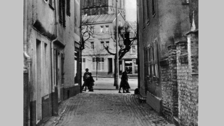 Der Metzger Wilhelm Behr hierselbst, Schulstraße 18 wohnhaft, beabsichtigt auf dem Grundstücke Schulstraße 18 eine Schlachthausanlage zu errichten. Dies Vorhaben wird dem der Aufforderung bekannt gegeben, etwaige Einwendungen hiergegen schriftlich in zwei Exemplaren oder zu Protokoll binnen 14 Tagen anzubringen. Foto: Blick in die Schulgasse.