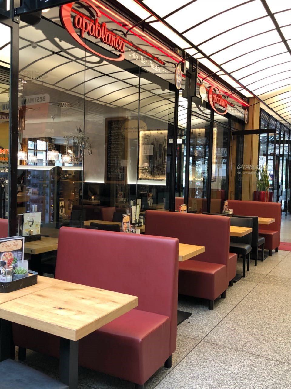 Hier trifft sich seit 1986 Jung und Alt vom Frühstück bis in die späten Abendstunden sieben Tage die Woche. Von unserer großzügigen Sonnenterrasse genießen Sie den herrlichen Blick auf den Siegburger Marktplatz. Drinnen erwartet Sie ein außergewöhnliches Ambiente mit verschiedenen Charakteren. Unser freundliches Team überrascht Sie mit einer internationalen Küche, von Pasta, Pizza über Kleinigkeiten bis hin zum Steak ist für Jedermann etwas dabei. Ob am Morgen zum Frühstück, auf eine leckere Waffel am Nachmittag oder auf einen Cocktail am Abend ist dies der Treffpunkt in Siegburg und lässt keine Wünsche offen