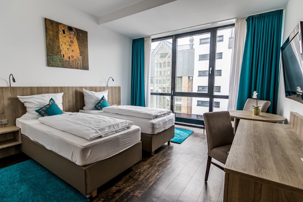 Das KONCEPT Hotel Benedikt liegt im Zentrum der Stadt Siegburg, gegenüber des Bahnhofs Siegburg/Bonn. Von hier aus gelangen Gäste binnen einer halben Stunde in die Rhein-Metropolen Köln und Bonn, zur Kölner Messe oder zum Flughafen Köln Bonn. Die 35 Zimmer des KONCEPT Hotel Benedikt bieten höchsten Komfort, großzügige Geräumigkeit und lassen weder auf Geschäfts- noch auf Privatreise Wünsche unerfüllt. High Speed WLAN, ein Flatscreen TV und das HERTINGS Restaurant & Café im Erdgeschoss runden das Gasterlebnis ab. Ein besonderes Highlight stellen die Deluxe Zimmer in der obersten Etage des KONCEPT Hotel Benedikt dar, die neben Klimaanlage auch Balkone mit dem besten Blick auf Siegburg und den Michaelsberg beinhalten.